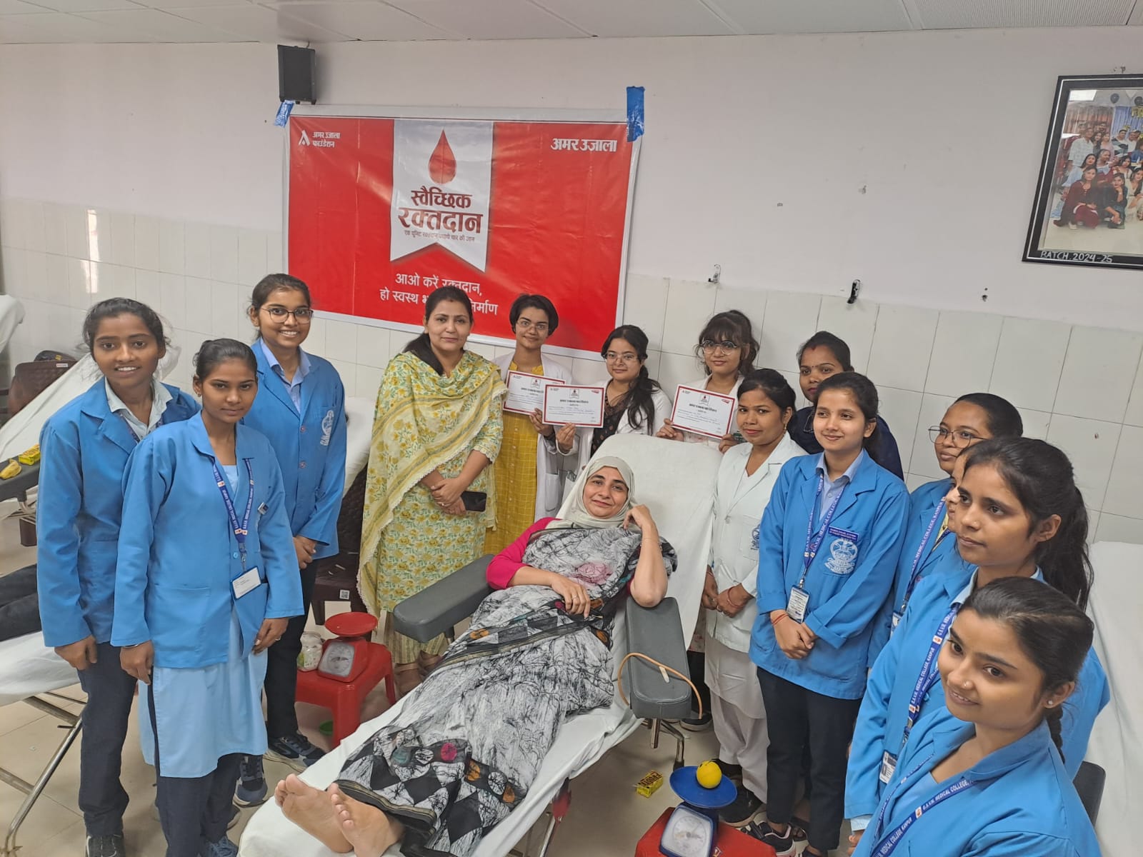 On this occasion, MBBS Students participated actively. With the blessings of Dr. Sanjay Kala, Principal GSVM and examplary initiative by Dr. Yashwant K. Rao, Prof. Dept. Of Pediatrics to motivate these MBBS students. Special mention for Dr. Lubna Khan (Nodal officier , Transfussion medicine), she also donated blood to boost the morale of all blood donors.